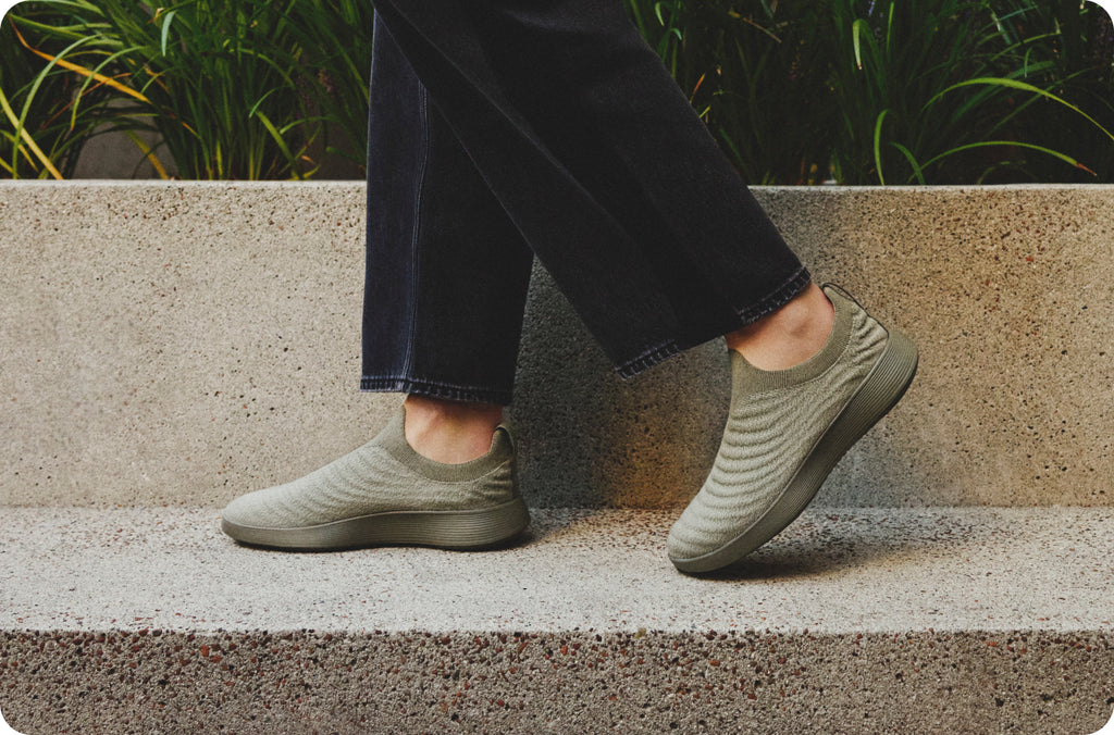 A blend of TENCEL™ Lyocell (tree fiber) and recycled polyester keeps things breathable and fresh. Underfoot, our dual-density Featherbed™ insole uses plush memory foam for comfort that lasts all day—no compromises, no break-in. Read more about our materials.