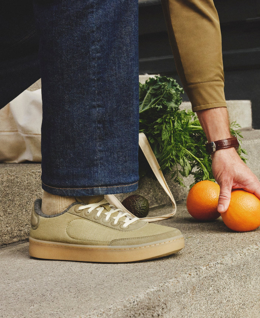 Canvas upper made from hemp and organic cotton blend with recycled leather overlays.