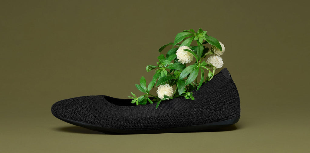 Made with TENCEL™ Lyocell (tree fiber) blend and castor bean oil-based insole foam.